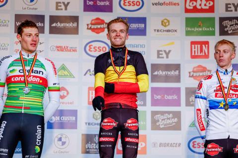 豪快にシャンパンを振りまくマグナス・コルトニールセン(デンマーク、オリカ・バイクエクスチェンジ) photo:CorVos