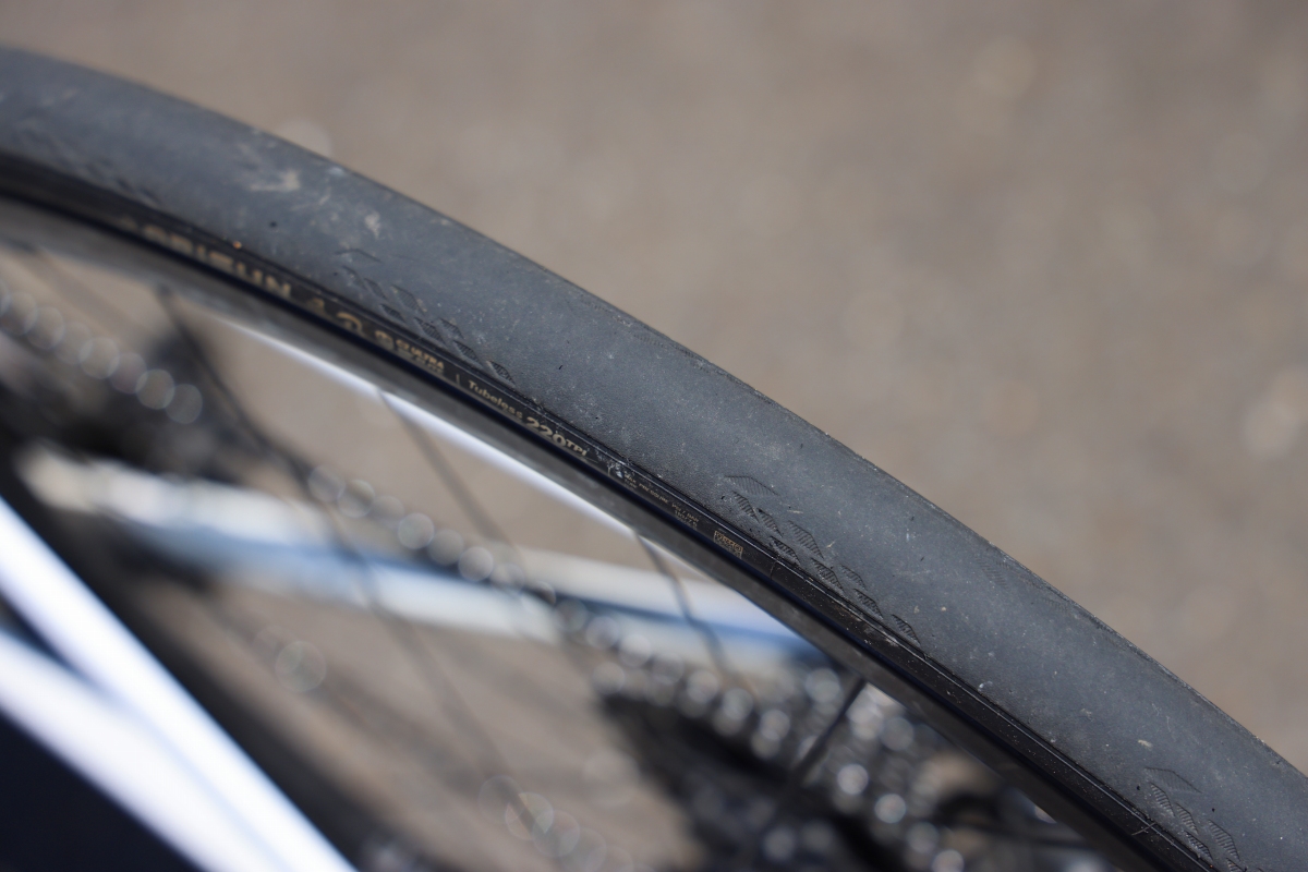 テストライドでは様々な空気圧を試してみたが、28Cでは4.5bar、30Cでは4.2barが体重60kgの私にとって丁度よい空気圧だった。因みに、これ以上低圧にしてしまうとサイドウォールの腰砕け感があり、バイクコントロールにも影響が出る。