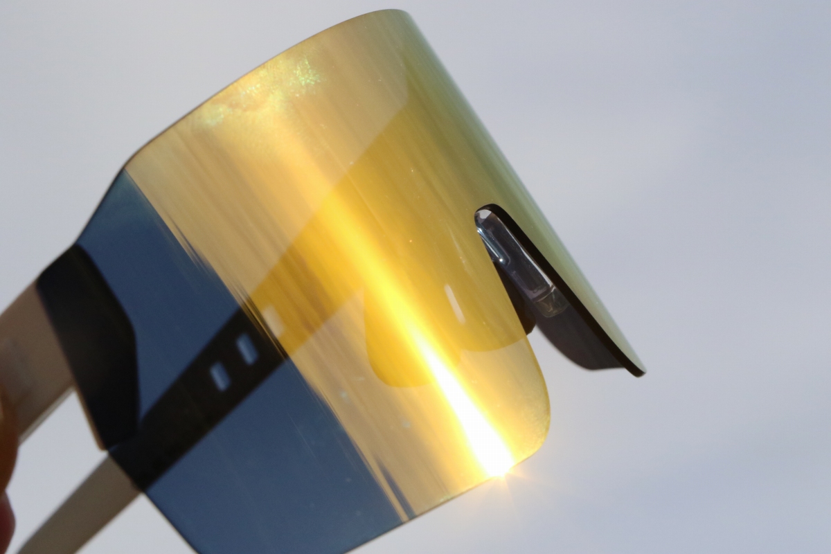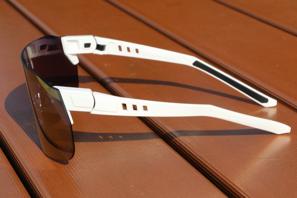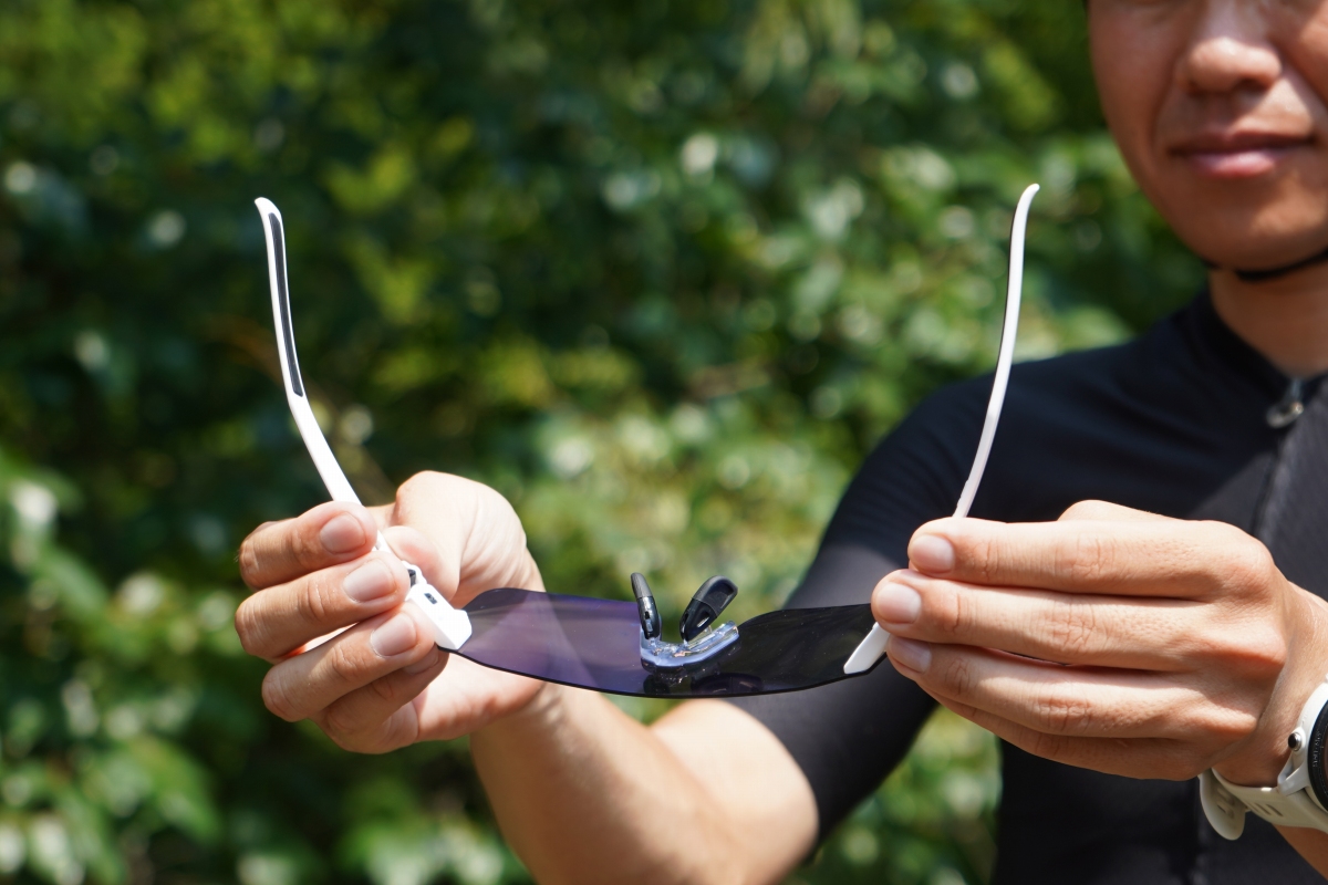 強度に優れたNXTレンズは厚みが薄く、テンプルも薄い作りで、全体的に撓る。アイウェアをかけてみると、優しく頭を包み込むようなフィット感でかけ心地が良い。長時間のライドでも快適である。しかし、一方で強い締め付け感はないため、フィッティングをしっかりと行うことが重要になってくる。