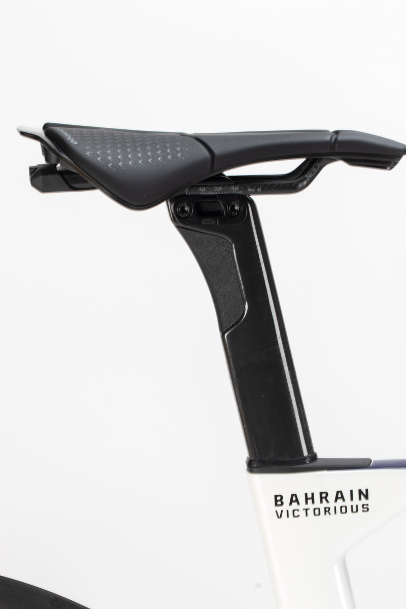 快適性という側面では、エアロ形状でありながらヤグラ下部分を絞り、その空間に衝撃吸収素材をインサートしたS-FLEXシートポストの採用や、非常に細身のシートステーによって、路面からの突き上げを効果的に緩和するよう設計されている。