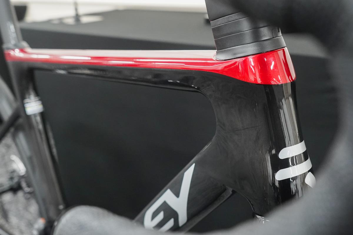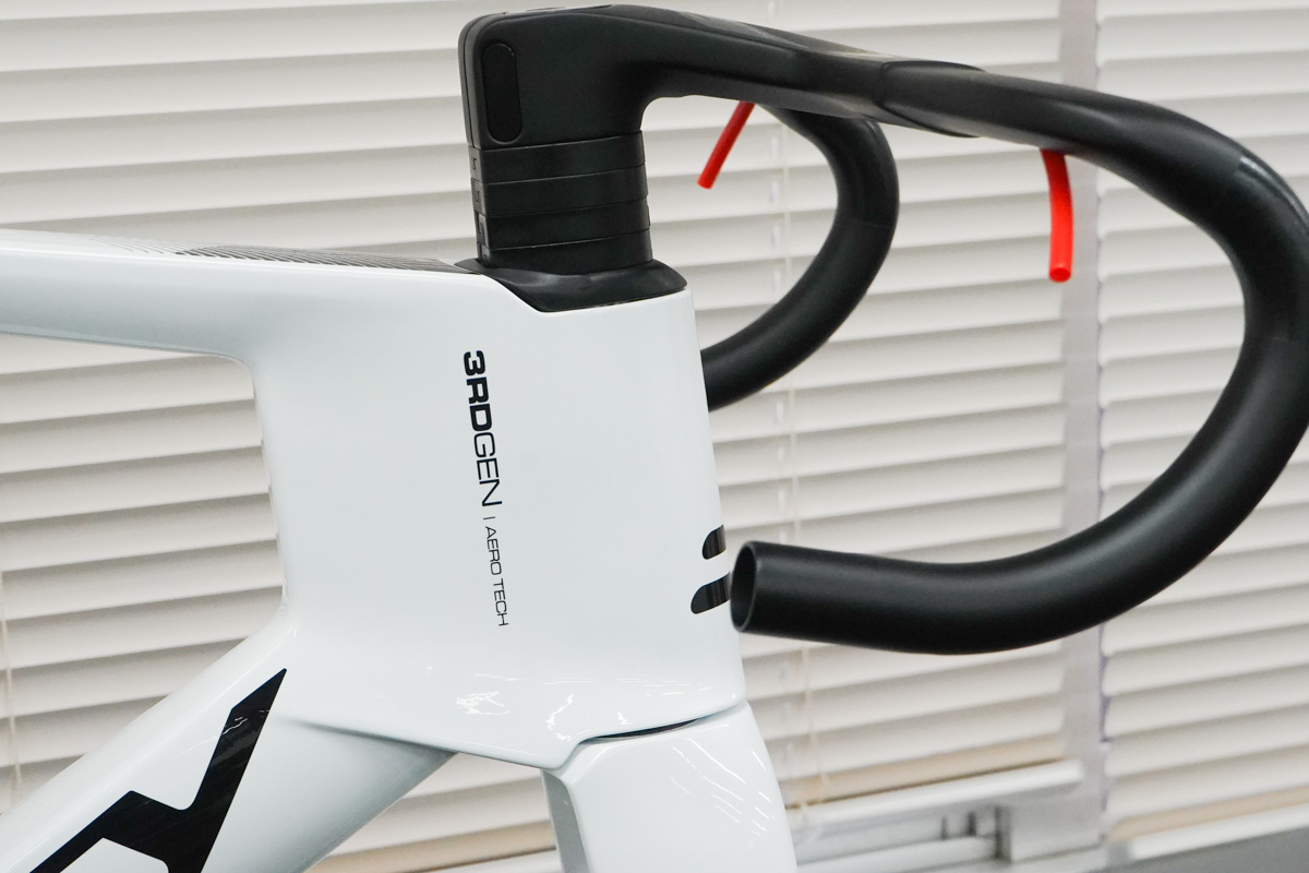 ASTRに反映されたトレンドはタイヤクリアランスが前後52mmとなっている点。さらにフロントシングルとダブルの両対応になったことで、ユーザーの好みやレースコースに合わせたセッティングが可能となっている。また、フレームはFALCNシリーズと似たような設計が行われており、エアロと軽量性(862g/Sサイズ)の両立を果たしている。