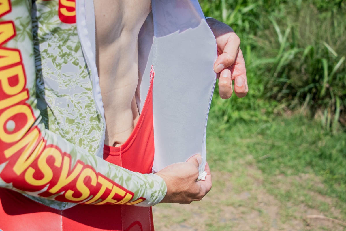さて、気になる2モデルの使い分けだが、Performanceシクロクロス ライト スキンスーツは気温が10~24℃くらいの秋から初冬にかけて開催されるシクロクロスの大会で活躍してくれるだろう。テストを実施した9月末は徐々に涼しくなってきた頃合いで、直接着用してちょうど良いかなという着心地。インナーウェアで調整すればCXシーズンを通して使えそうな一着だ。
