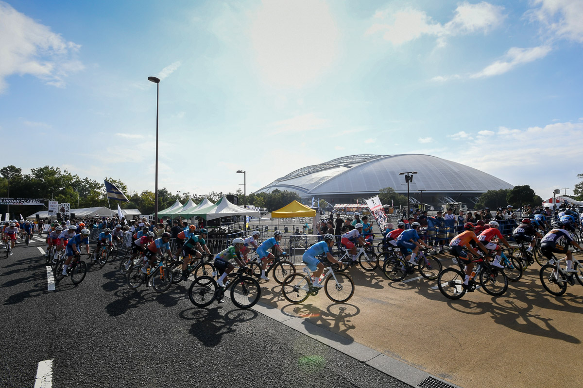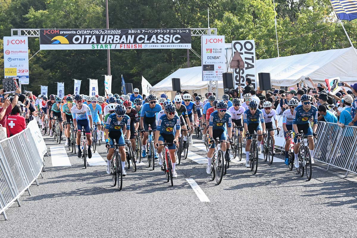 OITAサイクルフェス2日目は、150.8kmのロードレース「おおいたアーバンクラシック」。大分市の中心街の東に位置する大分スポーツ公園をスタート・フィニッシュ地点とし、周辺の公道に設定された1周11.6kmの周回コースを13周回するレースが行われた。