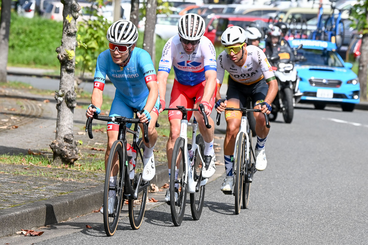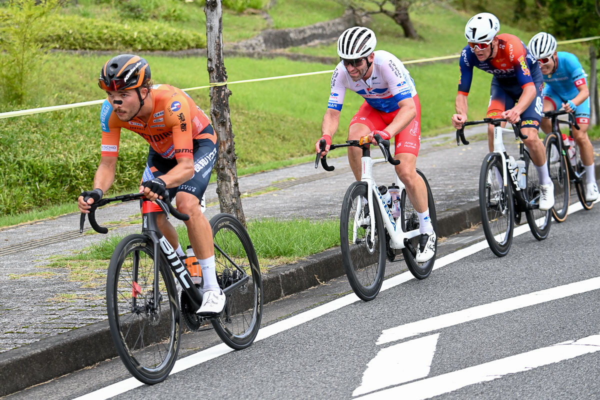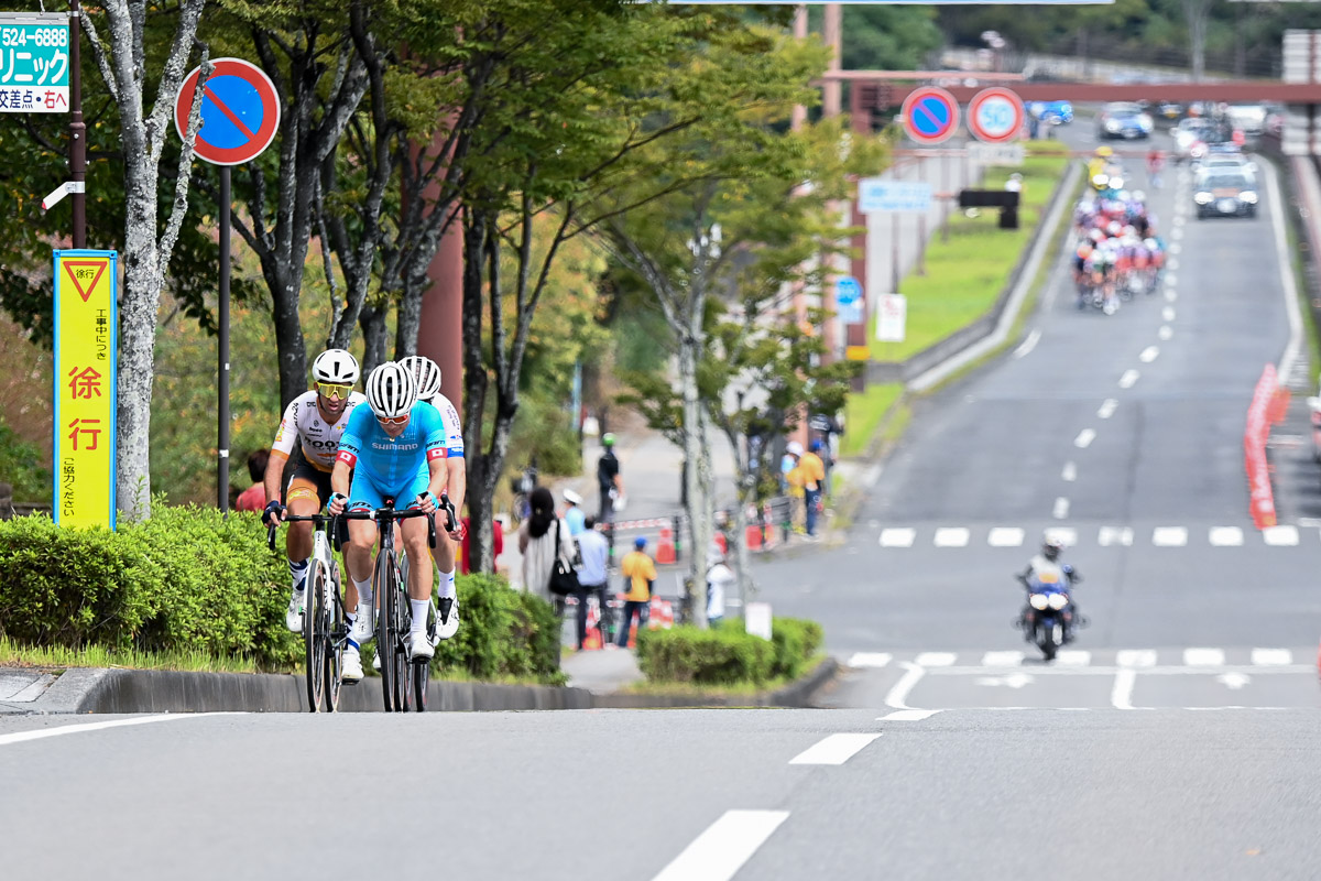 これをきっかけにメイン集団との差は再び拡大。チーム右京など先頭集団にメンバーを送り込めなかったチームがペースアップを図るも、30名弱まで人数が減った集団は追走の足並みが揃わず、先行する4名との差は1分差まで開く。その後も差が縮まることはなく、勝負は4名に絞られた。