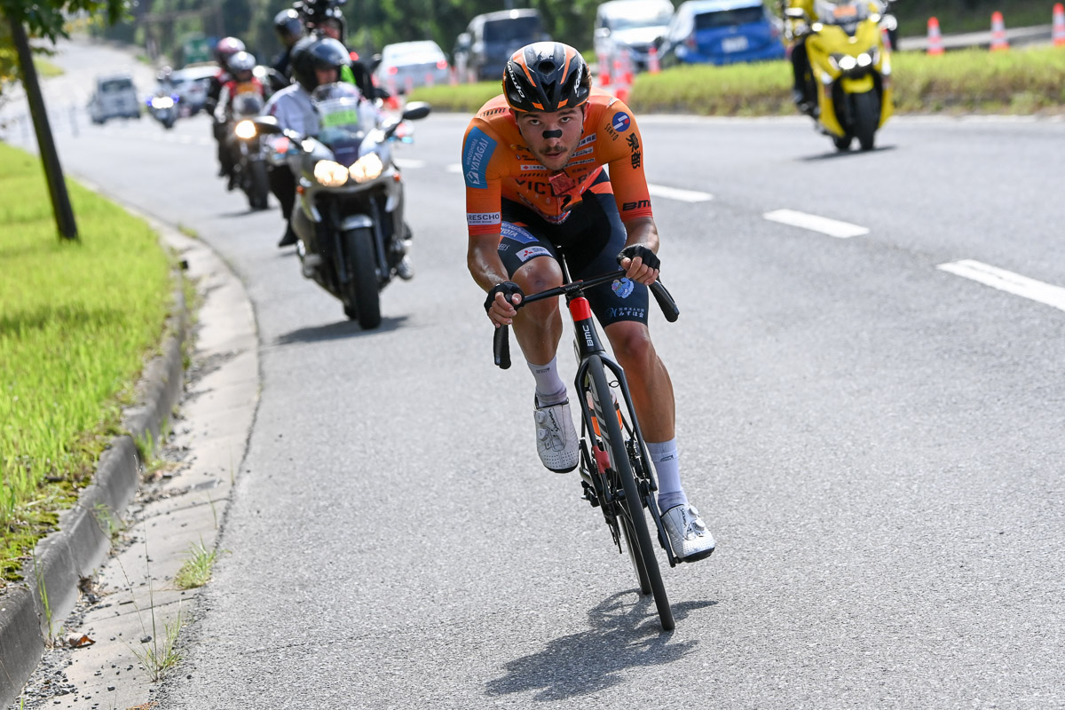 「レース中盤まで集団にいて思ったより負荷がかかってると感じ、このままではバテると思ったので逃げた方が良いと考えた。序盤にやろうかとも考えたがチームメイトがアタック合戦に対応してくれていて、僕の行くタイミングで逃げが決まった。残り周回がまだあって30秒くらいまでしか差が開かなかったので、最後まで行くのは難しいとは思っていたが、後から小集団が合流してくるのを期待していた。