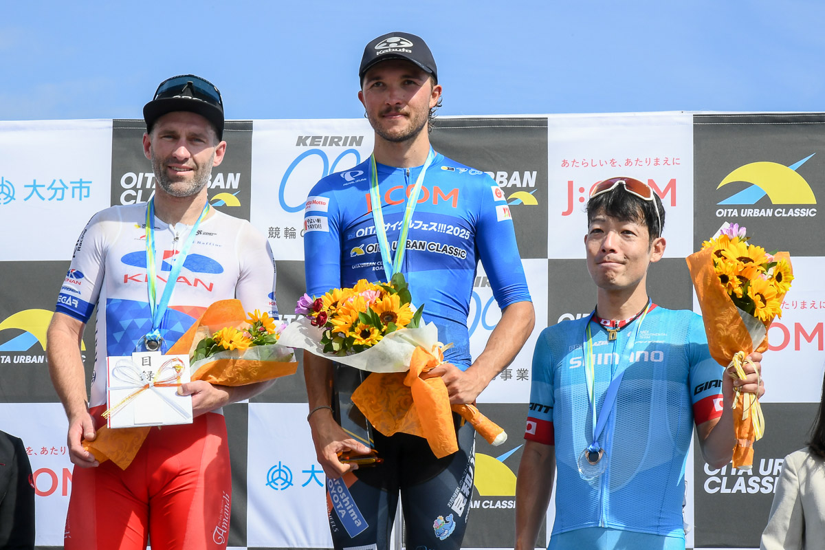 UCI1.2クラスのロードレース「おおいたアーバンクラシック」は、終盤に形成された4名の先頭集団から抜け出したエリオット・シュルツ(ヴィクトワール広島)が最終周回を独走で逃げ切って優勝した。僅差の2位争いをネイサン・アール(キナンレーシングチーム)が制し、3位に入部正太朗(シマノレーシング)が入った。