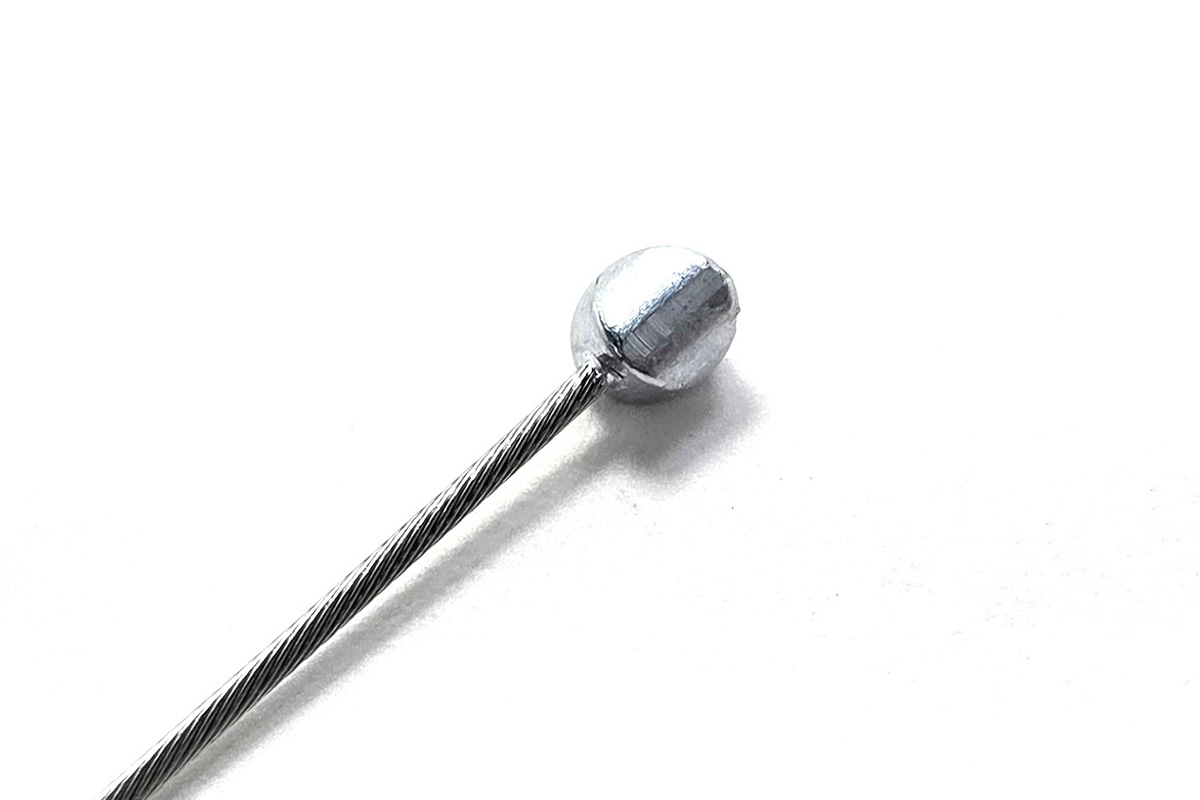 インナーケーブルのタイコ形状はイコール独自の工夫が施されている。通常と異なりカーブが付けられたタイコは、常にケーブルが引かれる方向を向くため、根元での折れ曲がりを防止する。細かな部分だが、ドロッパーシートポスト専用設計ならではの配慮だ。