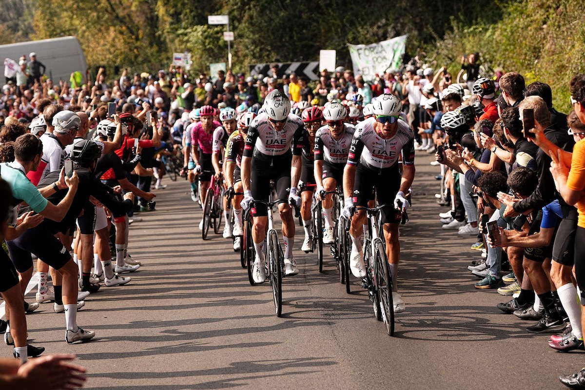 ヨーロッパのワールドツアーを締めくくり、モニュメント最終戦となったイル・ロンバルディア。タデイ・ポガチャル(スロベニア、UAEチームエミレーツXRG)がパッソ・ディ・ガンダ峠で仕掛け、33.7kmの独走勝利。史上初となる5連覇と、同一年のモニュメント全戦での表彰台を達成した。