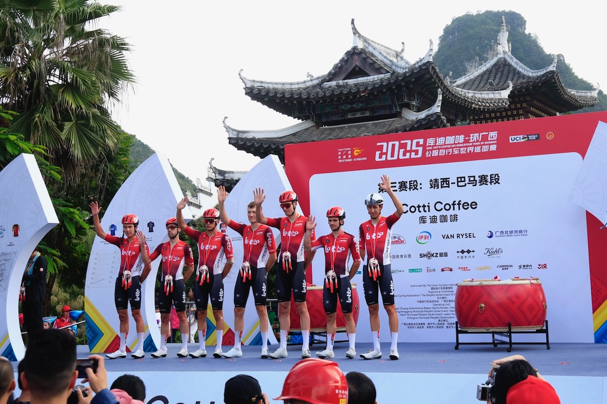 中国の広西チワン族自治区で開催中のツアー・オブ・グワンシー(UCIワールドツアー)は3日目。今大会の最長距離である214kmのコースは、終盤に2級、3級、3級と丘が連続。獲得標高差も2,300m超となるため、これまでの2日間と比べスプリンターには厳しいレイアウトと見られていた。