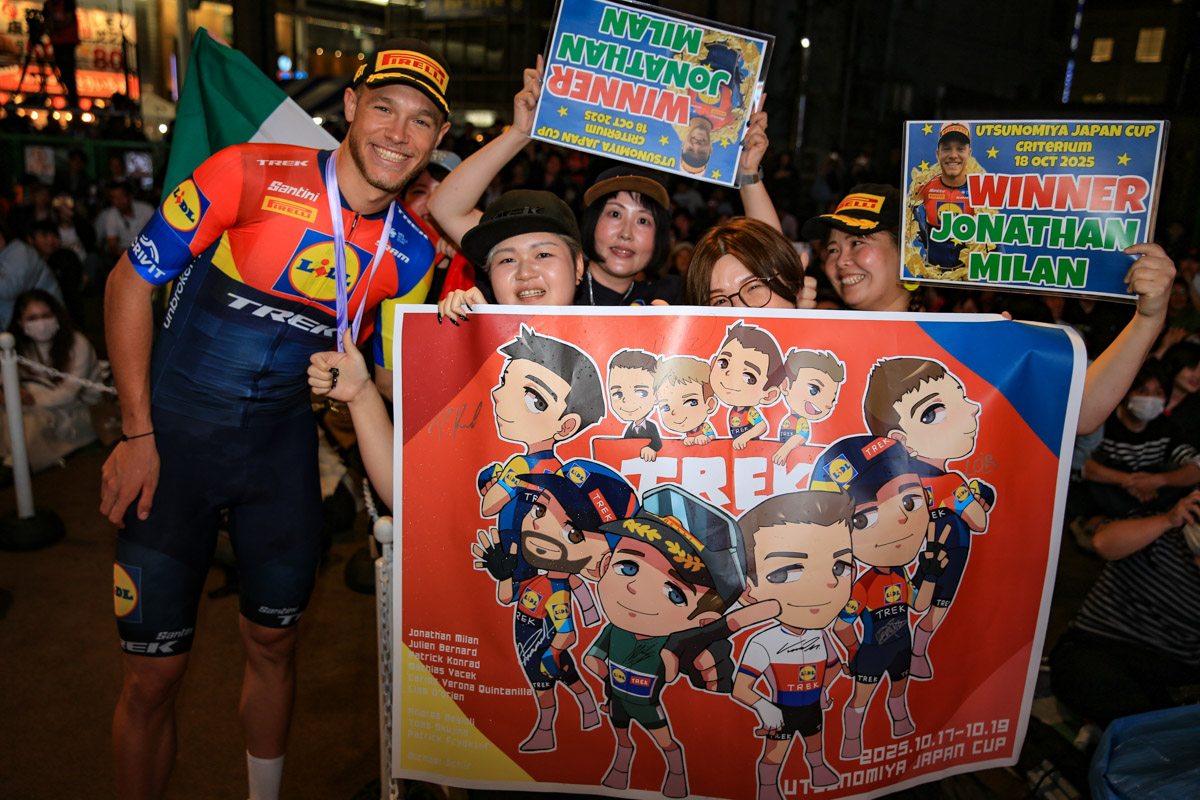 その強さはまさに圧倒的。リドル・トレックのお膳立てを受けたジョナタン・ミラン(イタリア、リドル・トレック)がジャパンカップクリテを制圧。平均50.7km/hという歴代最速レースを制した。