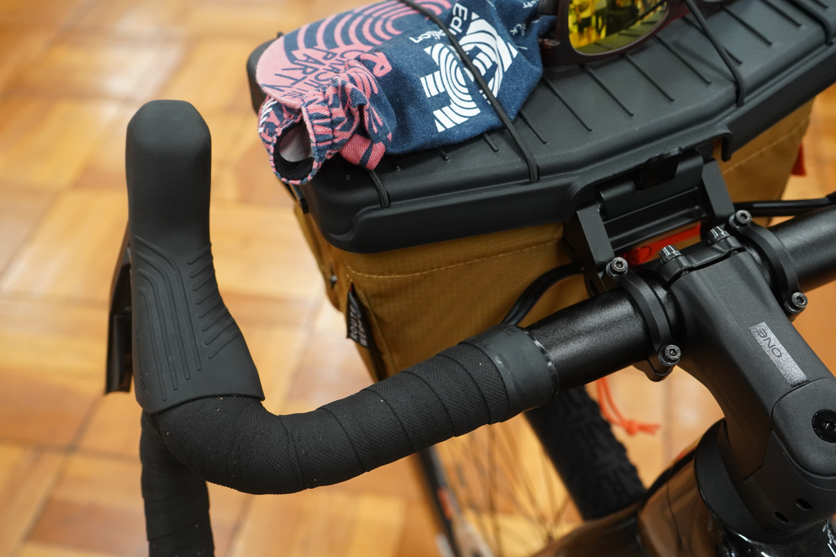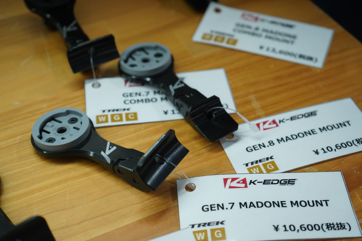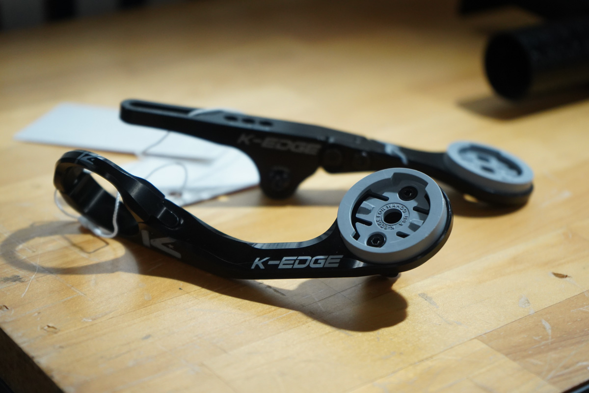 ケーエッジからは、ワフーのELEMNT ACEとガーミンのEdge 1050といった大型サイクルコンピューターに対応したマウントが登場。従来のXLサイズより太く長い「XXL」サイズとなり、エースをつけた上で下部にライトも取り付けられる強度を確保している。
