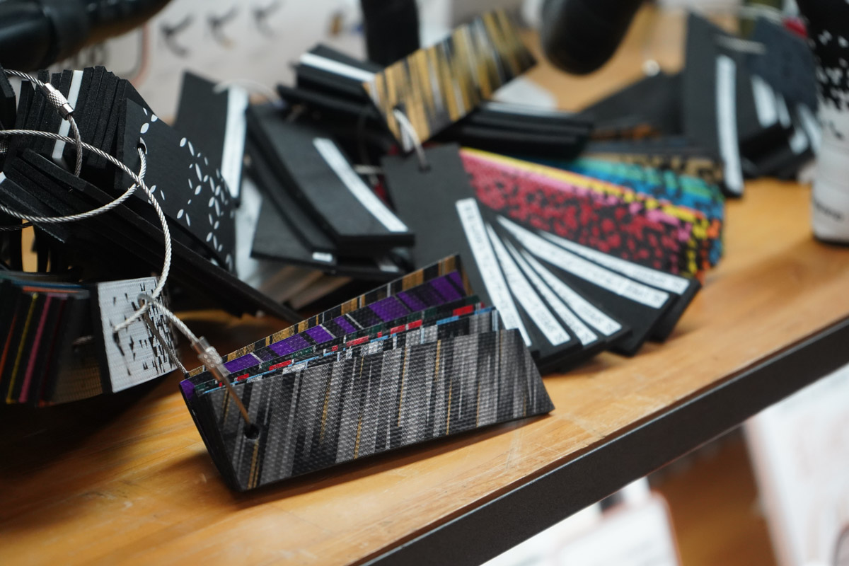 また、バーテープは豊富なカラーバリエーションが特徴的だ。「ユーザーの自転車に合わせて選びたい」というニーズに応えて色数を増やしており、展示会場のサンプル展示では膨大なカラーが並び、その数は見応えがあった。