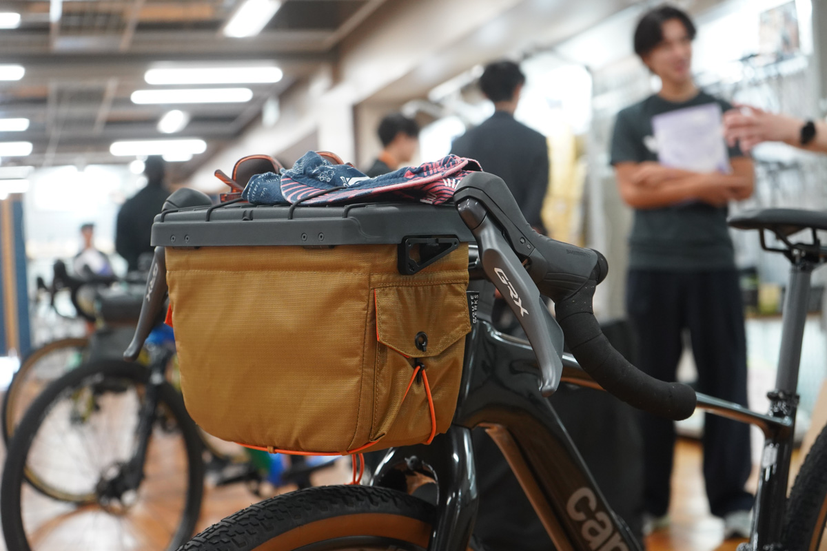 ルートワークスのHandlebar Bagの新バージョンが登場した。以前のモデルより二回りほど大きくなり、収納物を選ばない仕様となっている。通常モデルは一眼レフカメラがちょうどフィットする大きさだったが、ビッグサイズモデルとなることで他のものも収納できる余裕が生まれている。タイヤとのクリアランス確保のため、20mm高く設置できるハイマウントも選べる。
