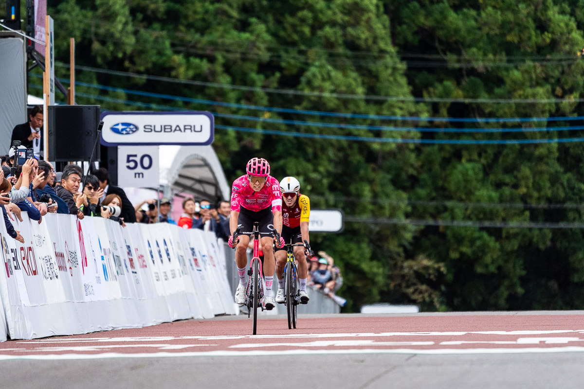 2位争いのマッチスプリントで先着したのはボーダンで、3位はイサギレ。影の優勝候補として押されていたマティス・ロンデル(フランス、チューダープロサイクリング)が4位、TEAM UKYOのファンチェルが5位とワールドツアー勢を相手に気を吐く結果に。途中の有力グループに入っていた橋川と岡は最終的に遅れ、22位の留目夕陽(EFエデュケーション・イージーポスト)が日本人最高位となった。