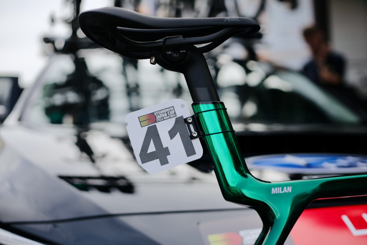 圧倒的な走りでジャパンカップクリテリウムを制したジョナタン・ミラン(イタリア、リドル・トレック)のスペシャルバイクを紹介。グリーンメタリックにペイントされたトレックのMadone SLRを紹介します。