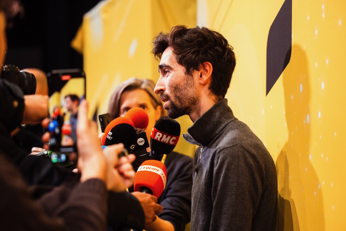 例年通り、パリのパレ・デ・コングレ(国際会議場)で行われたツール・ド・フランスのコースプレゼンテーション。今年マイヨジョーヌを争ったタデイ・ポガチャル(スロベニア)とヨナス・ヴィンゲゴー(デンマーク)の姿はなかったものの、マーク・カヴェンディッシュ(イギリス)が家族と共に出席した。