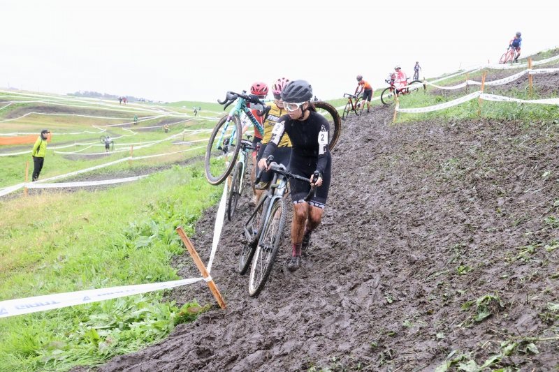 「今シーズン初めてのシクロクロスレースでしたが、優勝できてよかったです。マッドコンディションでランニングする区間が長くきつかったですが、皆さんの応援で頑張れました。全日本選手権に向けて頑張っていきたいです」と、石田は喜びと今後の抱負を語った。