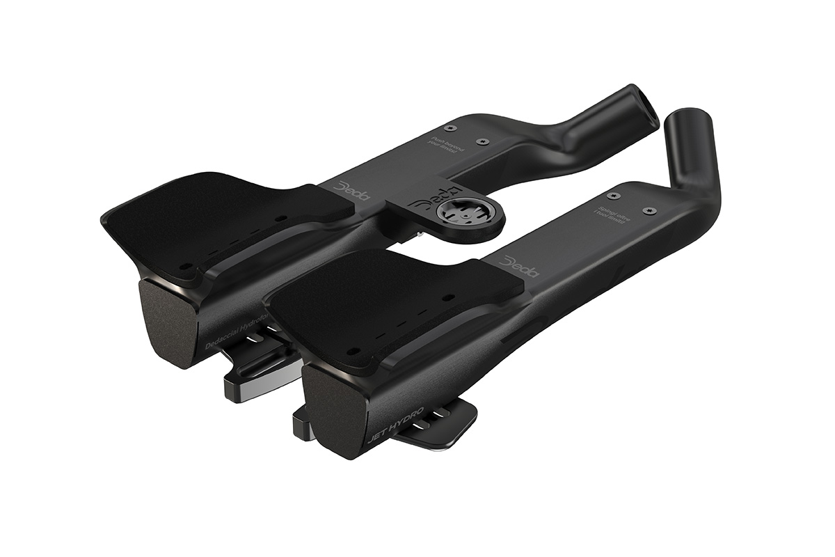 デダ・エレメンティから、タイムトライアル系のプロダクトが多数登場。同社のステム一体型ドロップハンドル"ALANERA RS"に装着するクリップオンアダプターや、前腕を隠すようなビッグボリュームのDHバー"JET2 HYDRO"を紹介しよう。