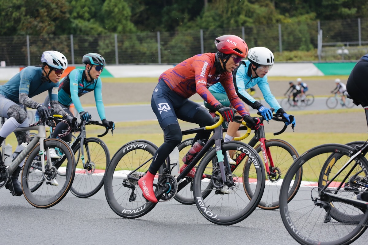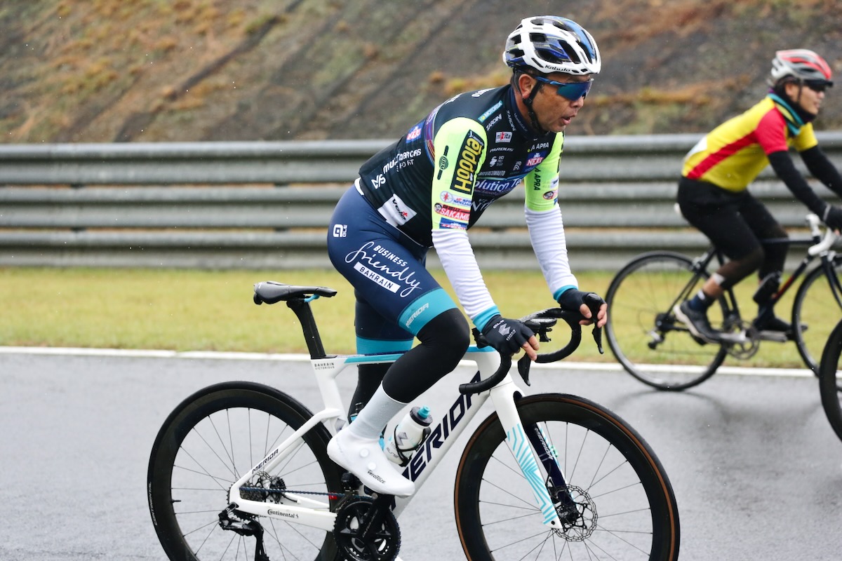 サポート選手たちは無線機を付けて、情報を聞きながら走っているから「サポートライダーが速すぎて気づいたらプロチームの練習会になっていた……」なんていうこともなく、落車が起こらないように集団を振り分けたり、落車があればすぐに駆けつけたり。ちなみに「力量のバラバラのライダーがごちゃ混ぜだと危ないですから、2周目の登りでちょっとふるいに掛けました」というユキヤさんは、そこからほとんどずっと先頭固定で鬼引きという大活躍っぷり。無線では「ユキヤさんが速すぎるからペースを落とすように言ってくれ!」という指令が他選手に伝わったとか、伝わらなかったとか……。