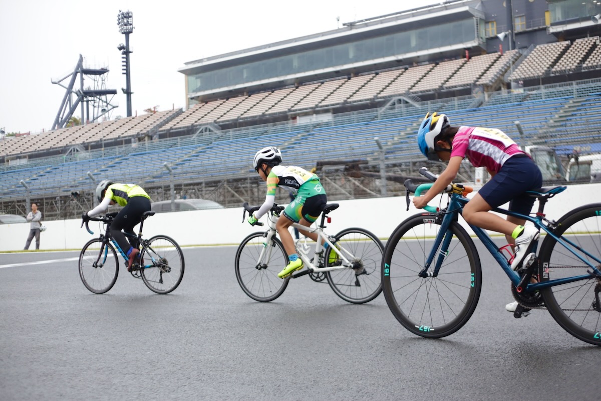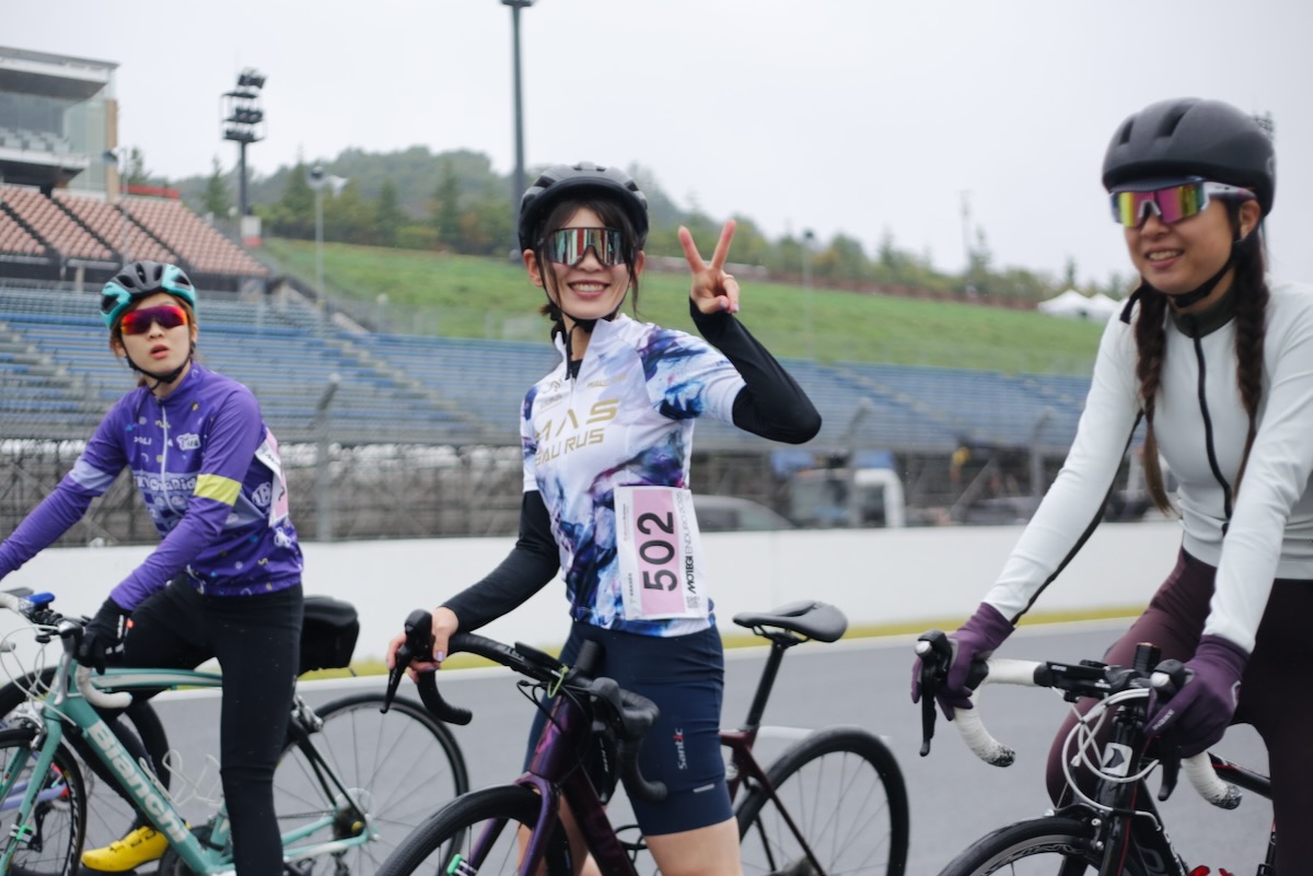 取材班は、フルマラソンライドに参加していた仲良しの女性ライダーお二人、高木絵理さんと亀田実紀さんに話を聞いてみた。お二人とも「まさくん」のチャンネルをきっかけに、無事スポーツバイクの魅力にハマったビギナー。高木さんはスプリントクイーン(2位!)とフルマラソンの、亀田さんもフルマラソンと「サーキットサイクルパス(イベント時間中は16時までずっとコース走行がOKなチケット)」のダブルヘッダーと、とってもやる気。お二人の言葉には、誰だってウィナーになれるという、フルマラソンライドの精神が詰まっていた。