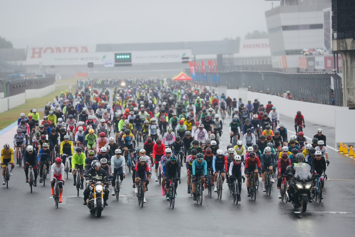10月末のモビリティリゾートもてぎ レーシングコース。秋らしい澄んだ空気……。になるはずだったが、今年は昨年と打って変わって朝からの雨がコース全体を濡らしていた。ピットロードに立つと、霧のような雨粒が頬を打ち、アスファルトが鈍く光っている。それでも2025年秋のもてぎエンデューロは、昨年比25%増という2,162名もの事前エントリー数を記録。雨の冷たさを吹き飛ばすほどの熱気に包まれた。