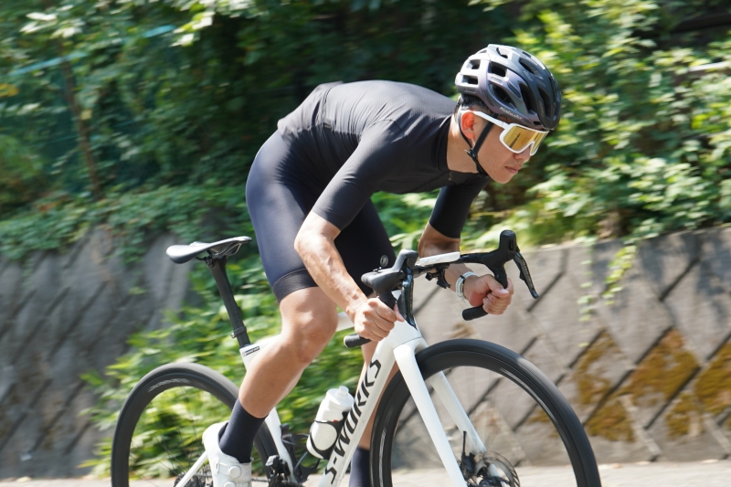自転車競技を始めた高校生の頃は「MOSTRO」が大人気で私も愛用していた。大学生の頃は「REDIMOS」へと移行し、最近では稲城FIETSクラスアクトに所属し、IZANAGIやAERO R2を使用してきたが、全てのモデルでS/Mサイズがジャストサイズ。FLEX-AIRも全サイズを試着してみたが、やはりS/Mサイズがジャストフィットだった。