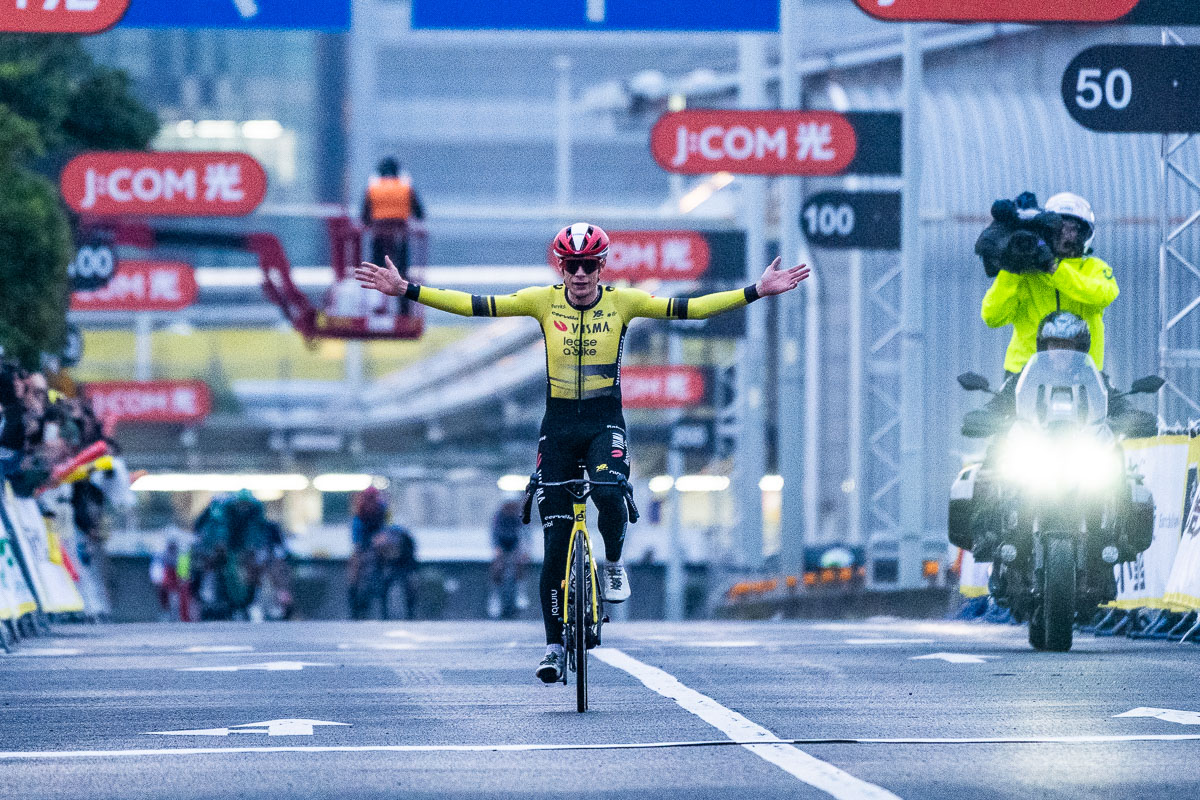 レース終盤の落車から集団復帰すると、精鋭集団からアタックしたヨナス・ヴィンゲゴー(デンマーク、ヴィスマ・リースアバイク)が独走勝利。今年ブエルタ・ア・エスパーニャを制したヴィンゲゴーが、第11回ツール・ド・フランスさいたまクリテリウムで初優勝を飾った。