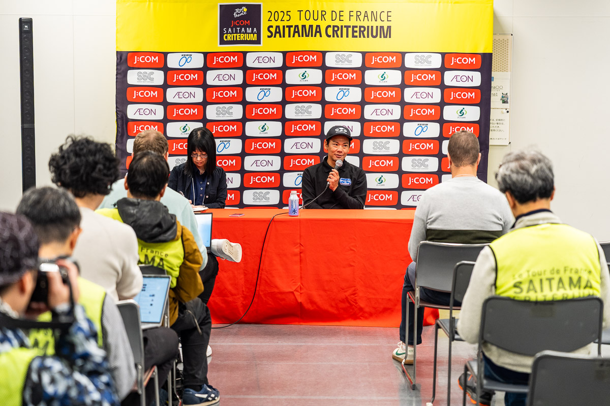 記者会見に応じる新城幸也(ソリューションテック・ヴィーニファンティーニ) photo: Yuichiro Hosoda