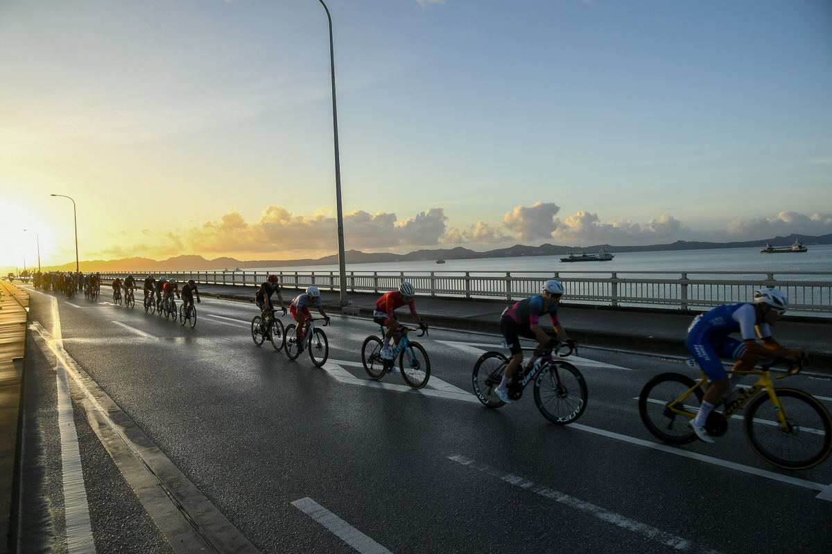 2025年シーズン国内レースのトリを飾る「ツール・ド・おきなわ」。UCI1.2クラスの男子のチャンピオンロードレースは、海外6チーム、国内7チームと沖縄選抜チームを加えた計14チーム65名が出走した。