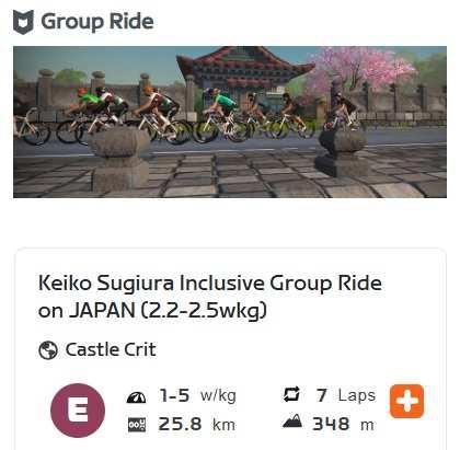 Zwift ライドイベント:Keiko Sugiura Inclusive Group Ride on JAPAN(2.2-2.5wkg)