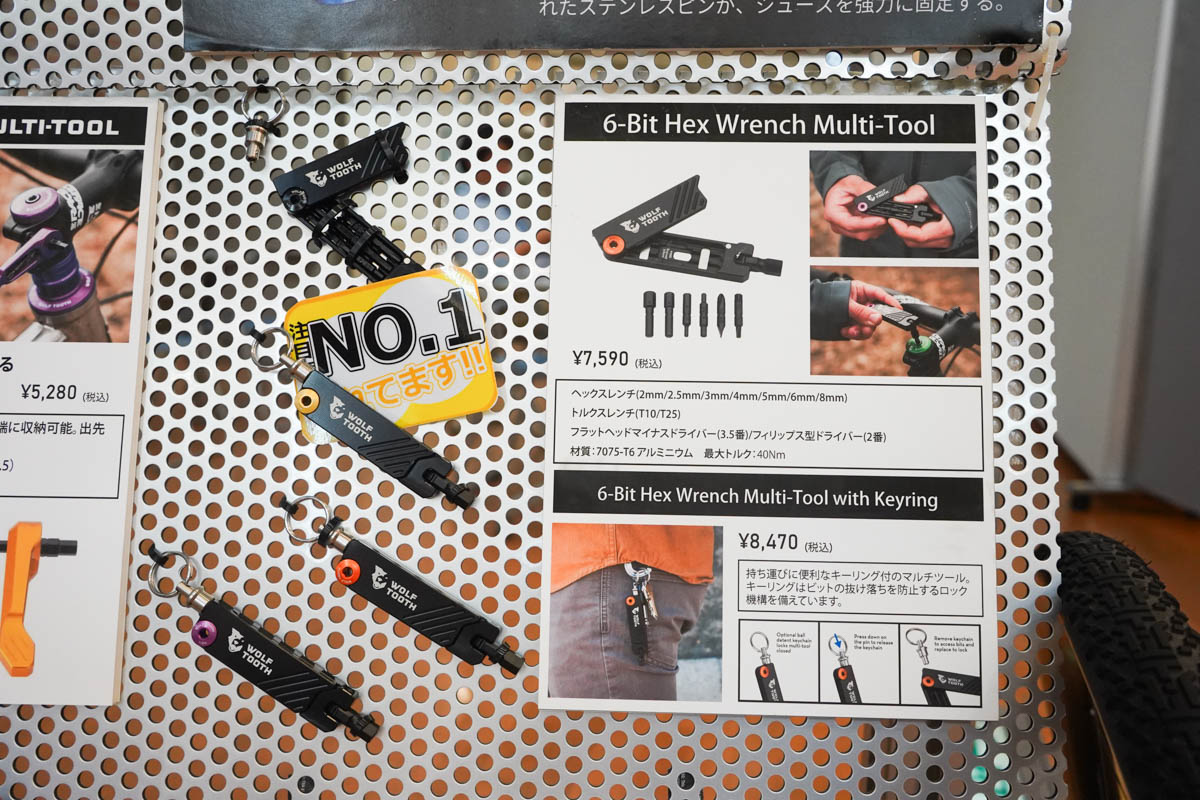 注目度No.1というポップと共に紹介されていたのが、6-Bit Hex Wrench Multi-Toolだ。自転車整備に必要なことが多い工具のビットを搭載する携帯工具で、最大40Nmに対応する性能面も魅力。タイヤレバーのように薄型かつ、キーリングも備えられているため、日常生活でも持ち運びやすいことも特徴だ。