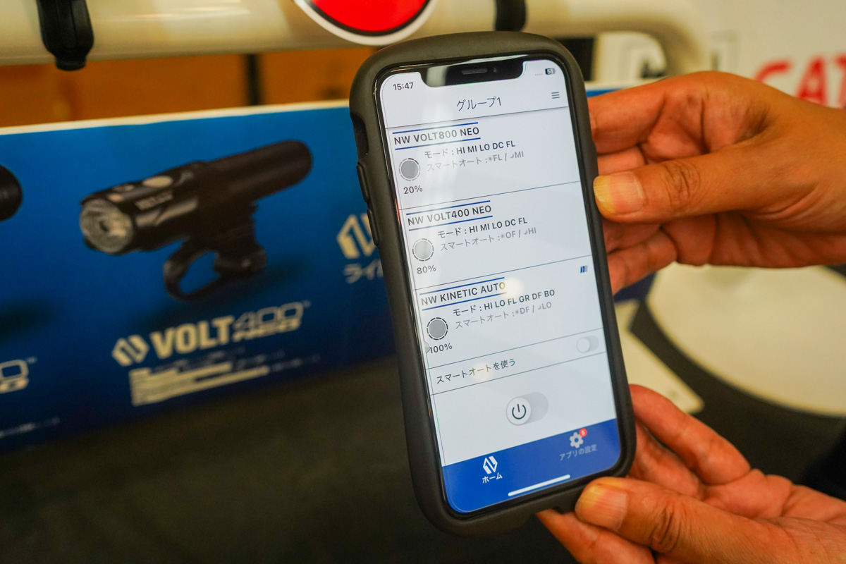 キャットアイはこの展示会でNETWORKシリーズを発表していた。これはライト同士でペアリングすることができ、一つのライト操作で、連携しているライトの自動点灯・消灯を行えるというスマートなモデル。スマホとも連携することで、ライトモードのカスタムが行えるなど現代のテクノロジーが詰まった最新ライトとなっている。