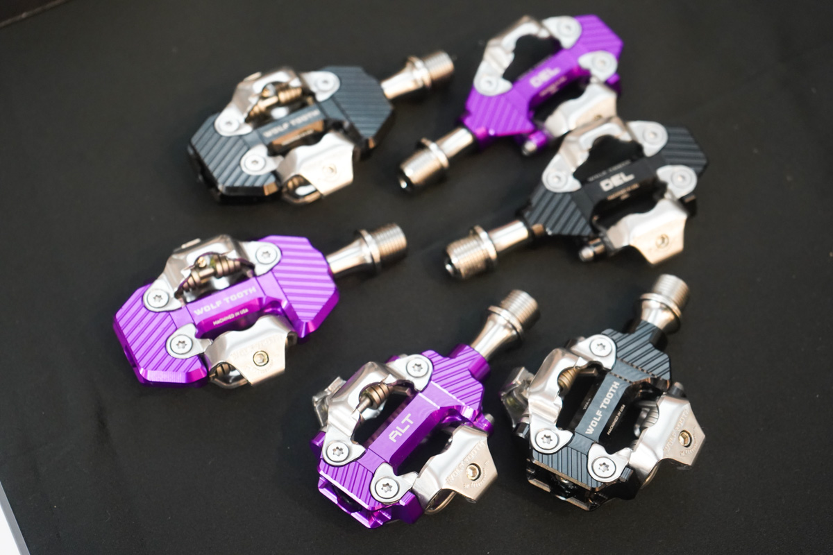 ウルフトゥースの新作はシマノSPDクリートと互換性のあるペダル3種類だ。踏み面が大きなトレイルモデルと一般的なモデル、そしてビンディング機構が片面のみというグラベルモデルが揃っており、ユーザーの使用状況に適したペダルを手に入れられるようになっている。