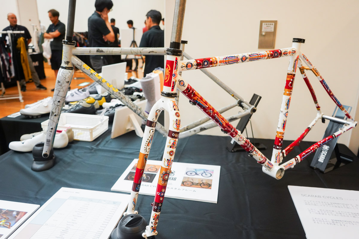 今回の展示会で目をひいたのはハンドメイドバイクブランドのスカラブ・サイクルズ(Scarab Cycles)だ。オリジナルブランドのダボスやギザロだけではなく、リッチーやオッツォなども取り扱う中、フカヤが新たにバイクブランドをラインアップに加える。