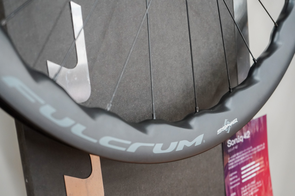 フルクラムはSoniq 42という新作ホイールが注目プロダクト。Sharqの波打つリムをミドルグレードに採用したモデルで、リム素材やハブなどのチョイス、構造を洗練させることでパフォーマンスと価格のバランスを整えていることが特徴だ。