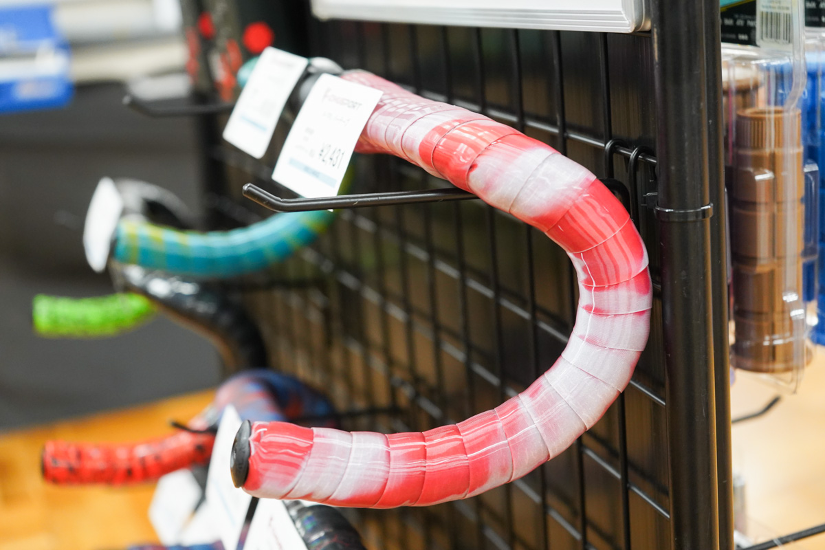 今年からフタバが展開を開始したバーテープブランドのChusport(チュースポーツ)も新しい選択肢だ。新素材のR-TPUを表皮に採用し、従来のポリウレタンよりも優れた耐久性を実現している。さらにクッション性やグリップ力にも優れており、快適なバーテープとなっている。カラーラインアップも豊富で、グラデーションモデルや、見る角度によって色が変わるモデル、トランプのマークが描かれているモデルが揃う。