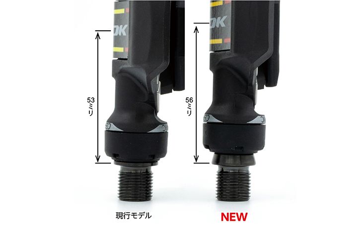 そんな最新バージョンのKEO BLADEに、早速新たなバリエーションが追加されることに。今回発表されたのはQファクターを拡幅出来るロングアクスルモデルだ。ノーマルモデルが53mmだったのに対し、ロングアクスルモデルでは3mm延長した56mmのQファクターを実現する。