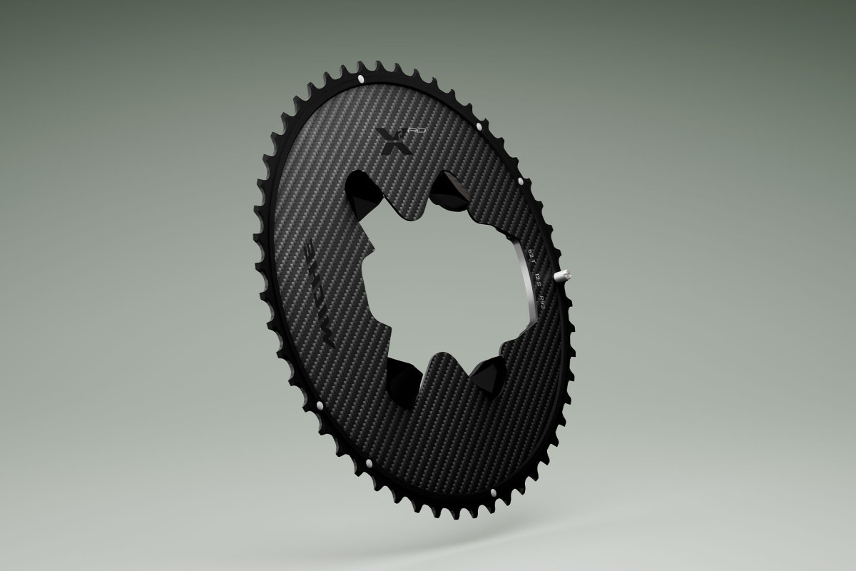 グルパマFDJをサポートするイタリアンパーツブランドのミケより、ロード用カーボンチェーンリングが登場。X2 RDは、ミケの理想のチェーンリングとして、優れたパワートランスファーを実現する高剛性なカーボンチェーンリングだ。