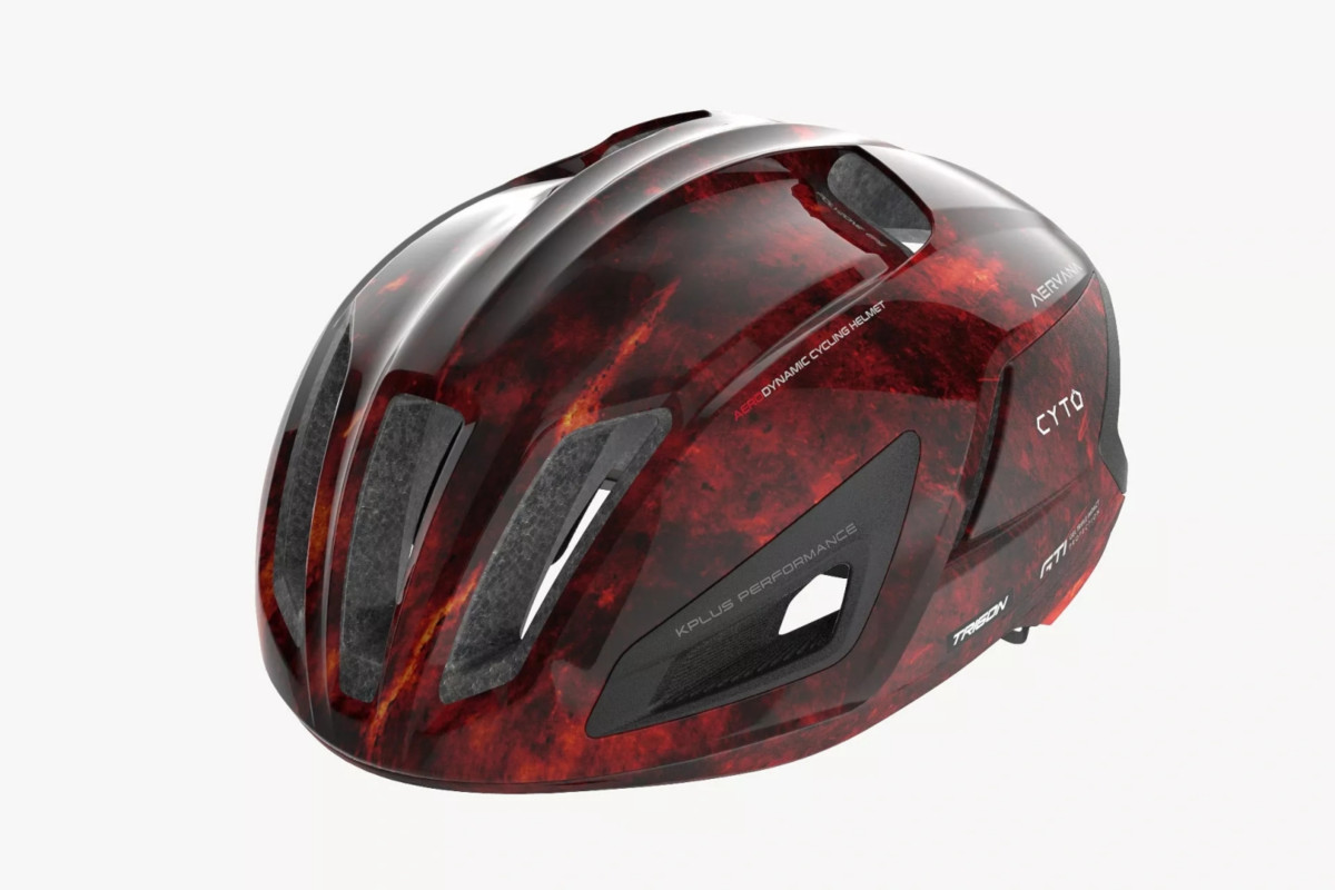 ケープラスのニューフラッグシップヘルメット、AERVANAに限定カラーが登場。溶岩をモチーフとしたグラフィックが描かれたTeam CYTO TRIGONが、ブランド史上最速のエアロヘルメットのラインアップに加わった。