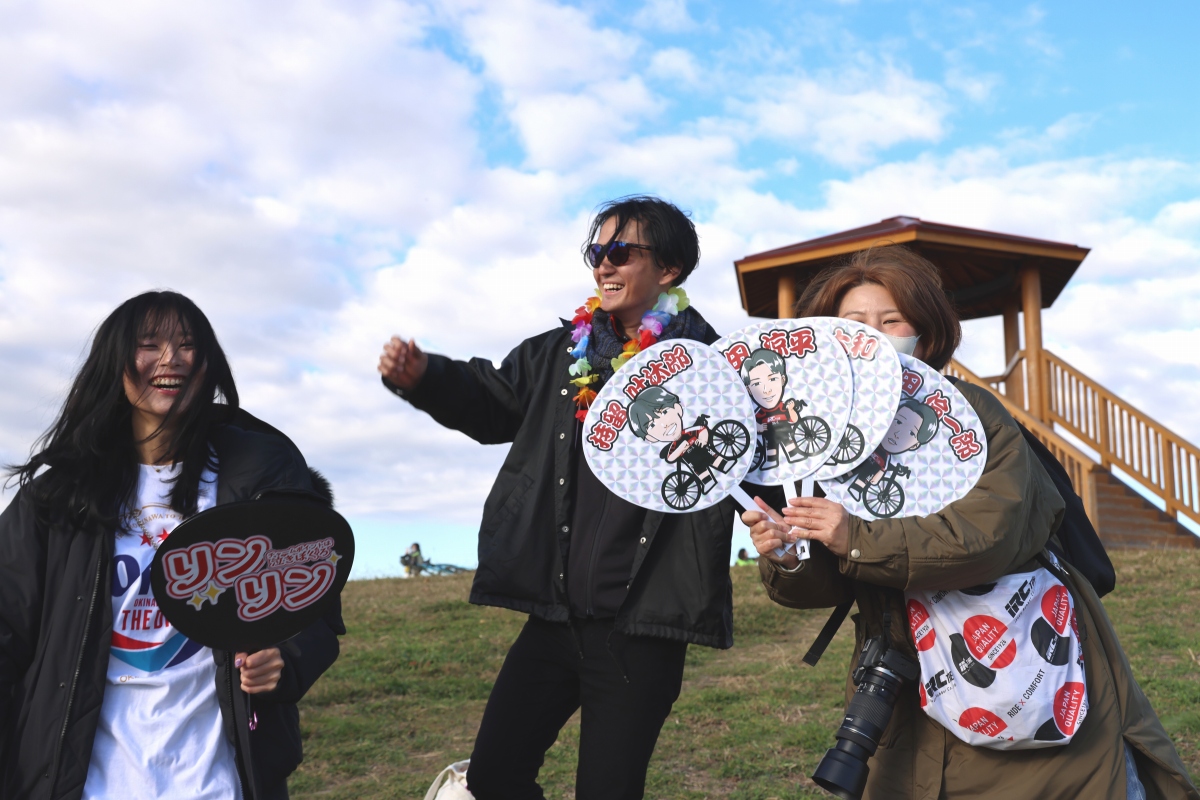 チームユーラシア-iRCタイヤのファンが駆け付け、選手たちにエールを贈る photo:Michinari TAKAGI