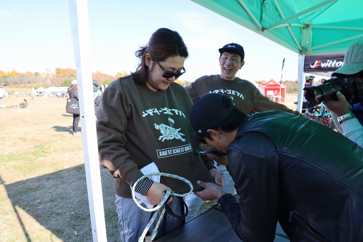 織田聖(弱虫ペダルサイクリングチーム)のオフィシャルファングッズのハイスピ―ドダートトレーナにサインをもらうファンの方々 photo:Michinari TAKAGI