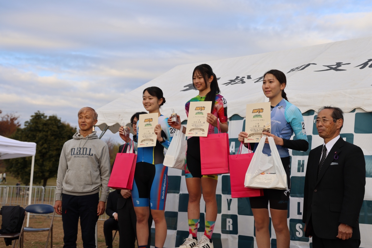そのまま日吉は、強豪が揃うエリート勢をも寄せ付けない強さで走り、女子ジュニアで今季2勝目を飾る。そして、全体2位、女子エリートでトップの石田がフィニッシュ。「彩華ちゃんに負けてしまいましたが、JCXで4勝できて嬉しいです!」とレース後に笑顔で答えた石田につづき、女子エリートは単騎で追い続けた渡部が2位、竹村が3位で表彰台に上がっている。