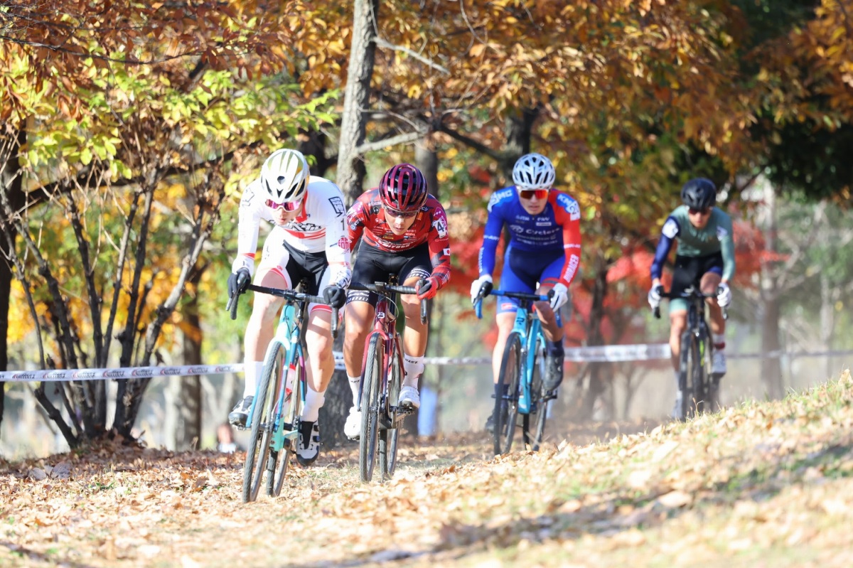 渡部は関西シクロクロスの琵琶湖グランプリと東海シクロクロスのWNPを制してJCX2連勝中で、同じく好調の石田唯(TRKWorks)はその後方から追い抜くチャンスを窺った。