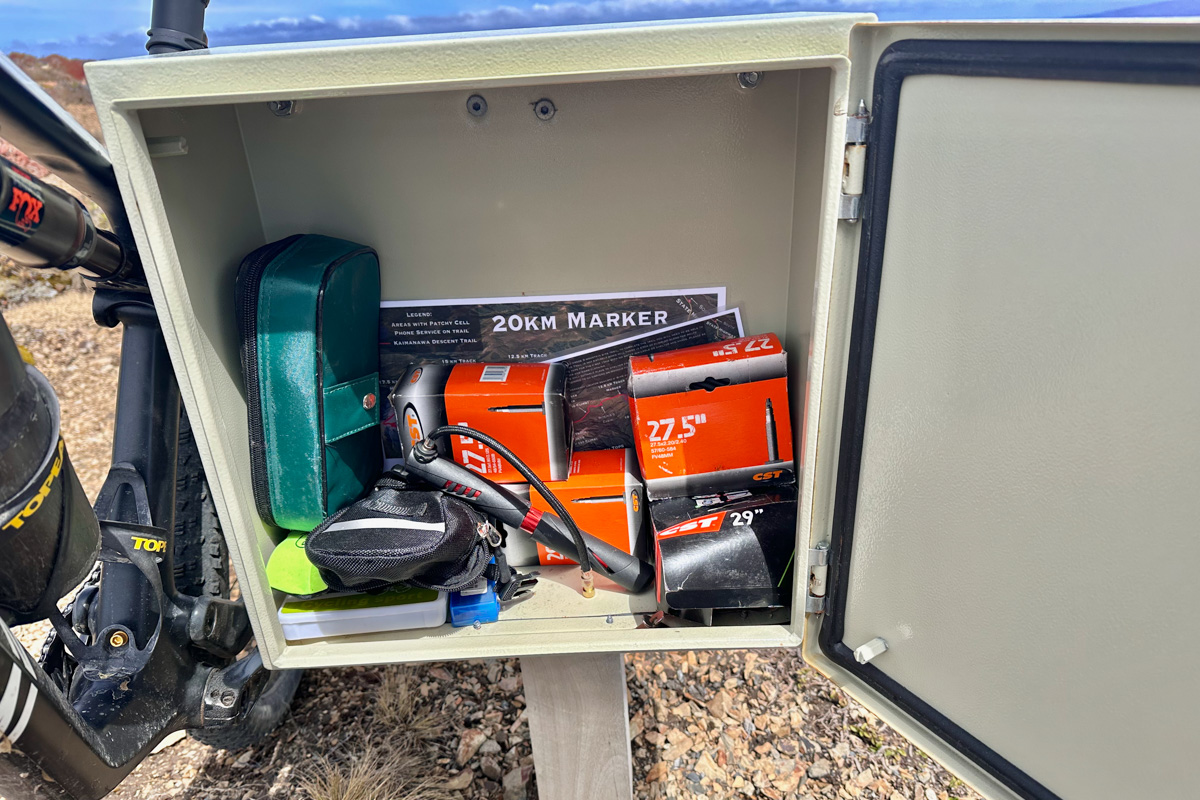 等間隔に設置してある緊急ボックス。中には修理工具、救急キット、非常食などが入っている photo:Yuki Ikeda