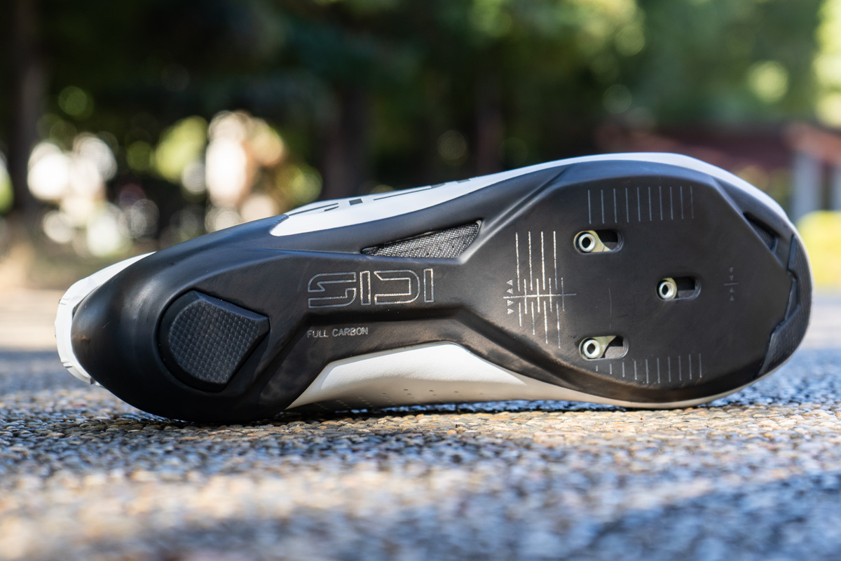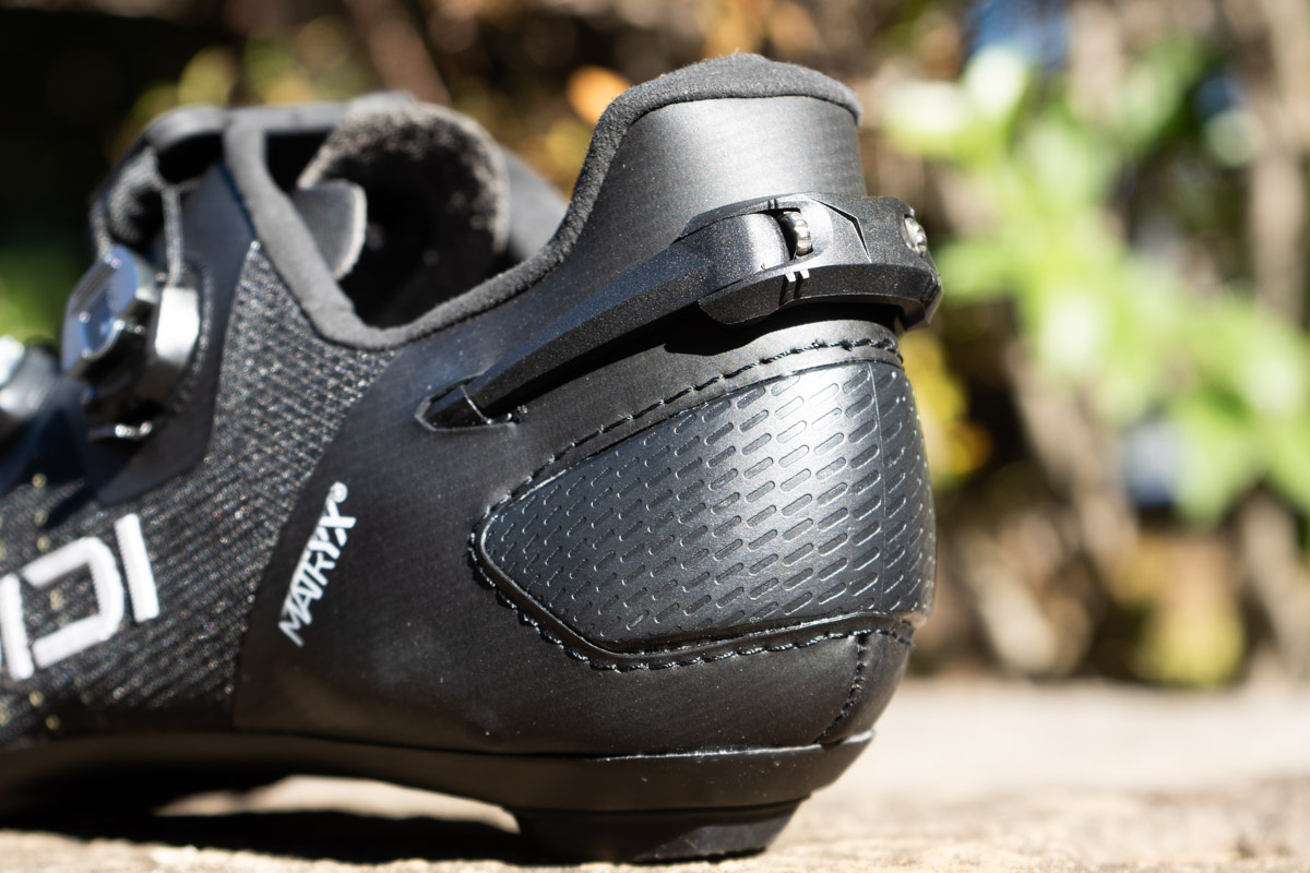 そしてSHOT 3の最大の特徴は新しいR1FCカーボン製のアウトソールだ。土踏まず部分を大胆に絞り込んだネクサスブリッジと、ヒールカップを一体化させたBi-FITカーボンシャシーという設計を採用し、シディのラインアップでは最も高い剛性指数の12をマーク。