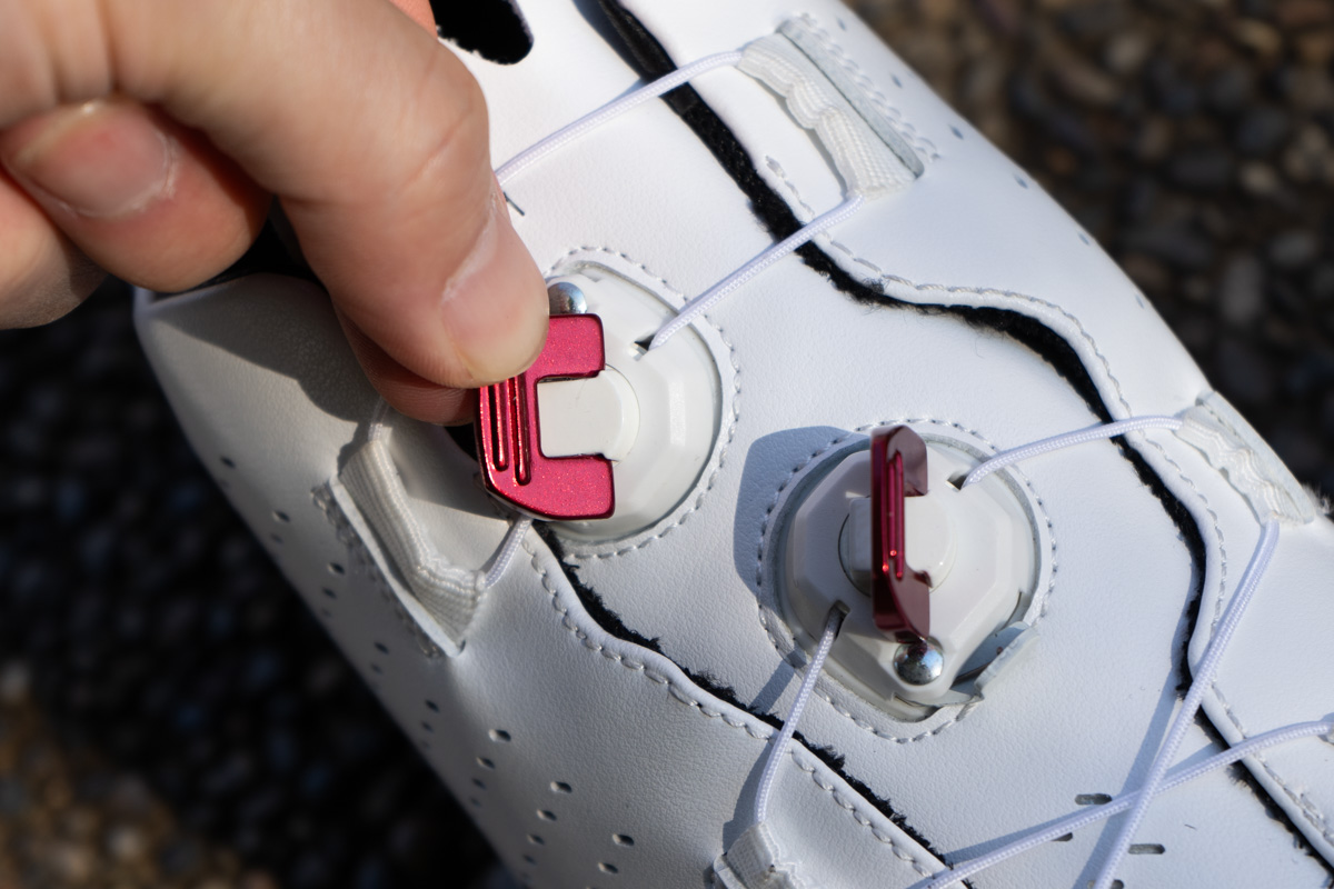 クロージングシステムのベルトもFirmor Xを構成しており、土踏まずから足を持ち上げるようなフィットをもたらす。ダイヤルは SHOT 3と同様のNUUN 001Cアルミダイヤルを採用し、素早い調整を可能にしている。