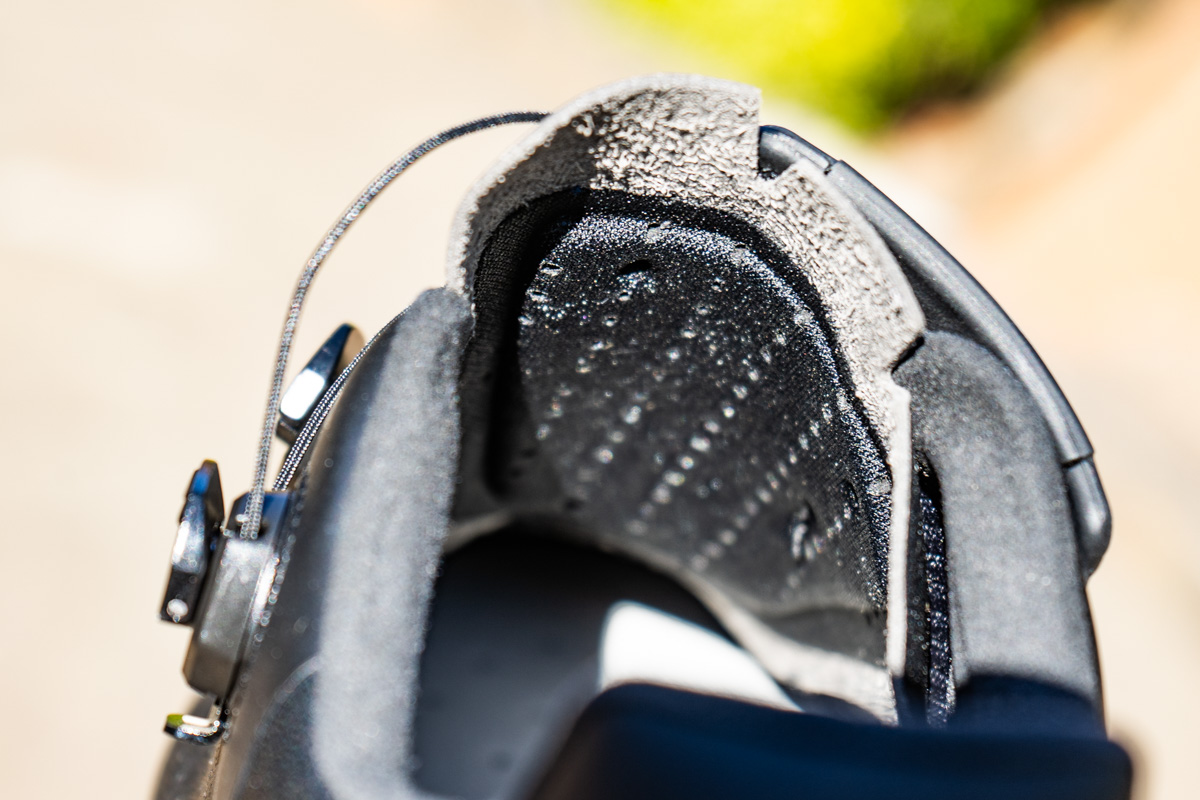 アッパーの側面にはSHOTやWIREに採用されるFirmor技術が用いられている。アッパーにサポートシステムを配置することで足の安定性を確保しており、ハイパワーペダリング時でも自信を持って脚を回すことができるはずだ。ヒール部分もアッパーに統合されたエルゴノミックカウンターによって、安定性を高めている。