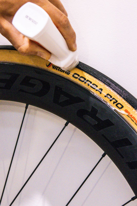 今回、ヴィットリアが新たにリリースしたのは、タイヤの性能を最大限に発揮するためのメンテナンスグッズ。一つが、タイヤの着脱をスムーズにするための専用潤滑剤であるBead Glide。