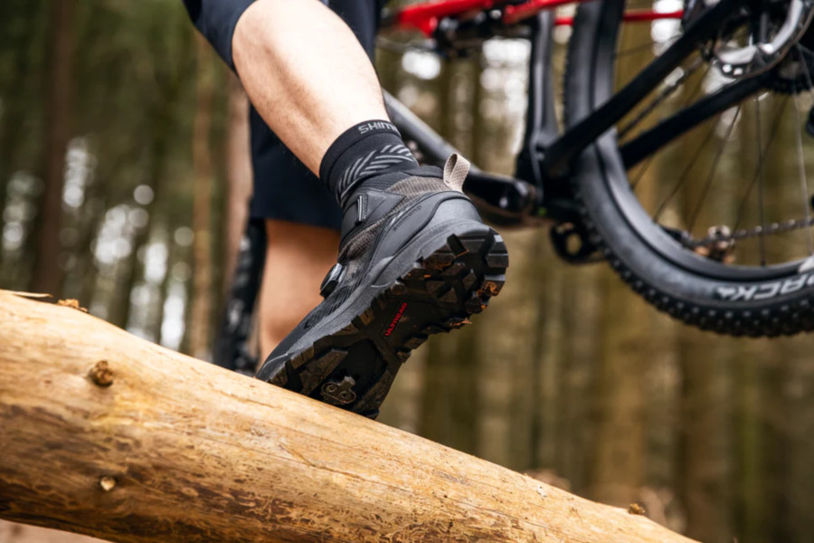 アウトソールにはシマノ独自のULTREAD EXを採用。前足部の接地面積を広げることでグリップ力を高めつつ、クリートのがたつきを軽減する。更に別売のラバークリートキャップを装着すれば、歩行時のトラクションと安定感を向上させることも可能だ。