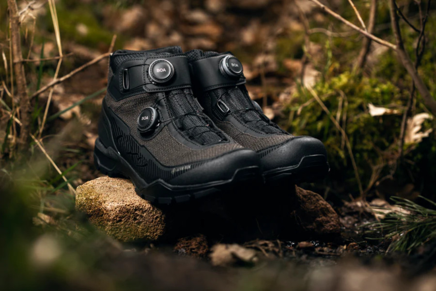今回そのシリーズの最新作かつ、トップモデルとしてリリースされたのがEX900。サイクリングシューズとしては珍しいハイカットアッパーを採用した一足で、まるで登山靴にSPDシステムを搭載したかのようなルックスが特徴だ。